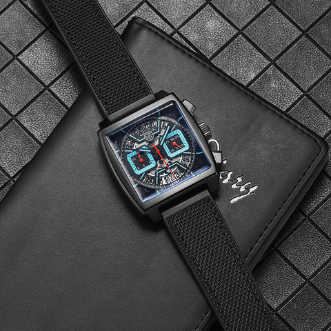 Oupai 2025 New Arrival vuông Chronograph thạch anh đồng hồ người đàn ông cao su dây đeo vải Luminous Monaco Đồng hồ đeo tay người đàn ông không thấm nước