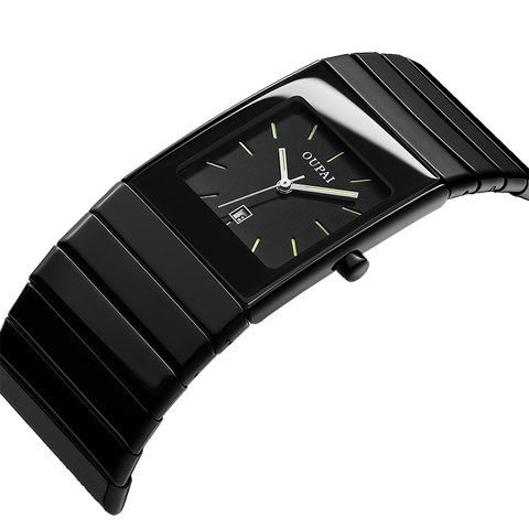 Đồng Hồ Đeo Tay Cao Cấp Cho Nam, Đồng Hồ Gốm Màu Đen, Mặt Vuông, Bằng Thép Không Gỉ, Chống Nước, Có Lịch Cho Sản Phẩm OEM