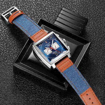 OUPAI New Arrival Square Chronograph Quarzuhr Mann Gummi Stoff Armband Leuchtend Monaco Armbanduhr Mann Wasserdicht