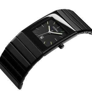OUPAI Jublie 34mm breite alte klassische schwarze Keramik ultra dünne Rechteck uhr Quarz wasserdichte Marke antiken Stil für Männer